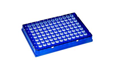 DuraFrame 96-W Full-Skirt 0.1 mL PCR Plate, BLU Frame/CLR Wells, 10 plates/pack