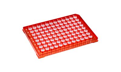 DuraFrame 96-W Semi-Skirt 0.2 mL PCR Plate, RED Frame/CLR Wells, 10 plates/pack