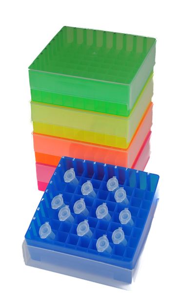 81-place Freezer Rack with lift-off lid, Fluorescent Assorted, 5 racks/stack
