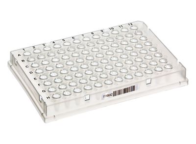 Full Skirt Low Profile 96-well PCR Plate, Clear, Barcoded, 10/pack